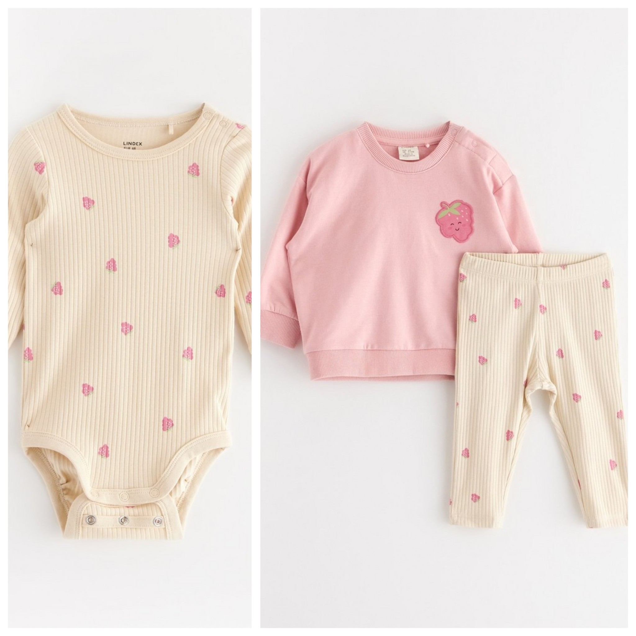 Komplektą sudaro: smėlinukas su prailginimu, trikotažinės kelnės (be pašiltinimo) ir džemperiukas (su lengvu pašiltinimu).