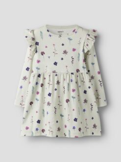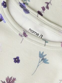 Name it vaikiška laisvalaikio suknelė ilgomis rankovėmis „Kreminė gėlėta”