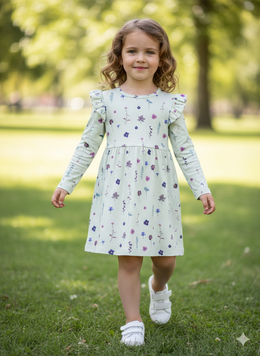 Name it vaikiška laisvalaikio suknelė ilgomis rankovėmis „Dūminė mėta”- tai itin kokybiška, organinės medvilnės suknelė mergaitei.